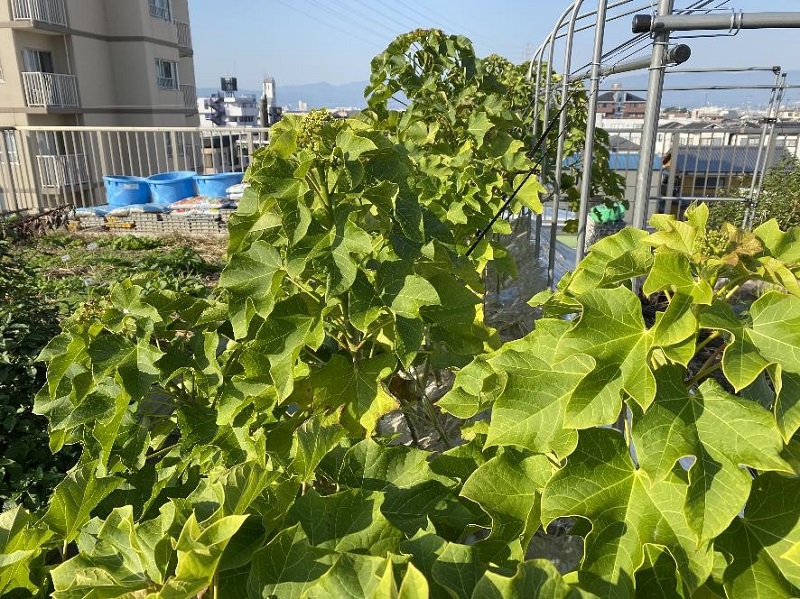 早いもので、もう11月も半ばになりましたが、屋上のレボハーブとジャトロファは寒さに負けることなく、陽の光を浴びて元気に成長しております。 牛糞と鶏糞を使った無農薬の土は栄養たっぷりで、ジャトロファもまだ成長しております。 10月に植えられたハーブは、ローズマリー、ラベンダー、レモンハーブ等10種類以上にもなり、青々と生い茂っています。 今後のレボハーブの成長を楽しみに待ちたいと思います。 元気に成長中の10種類以上のレボハーブ