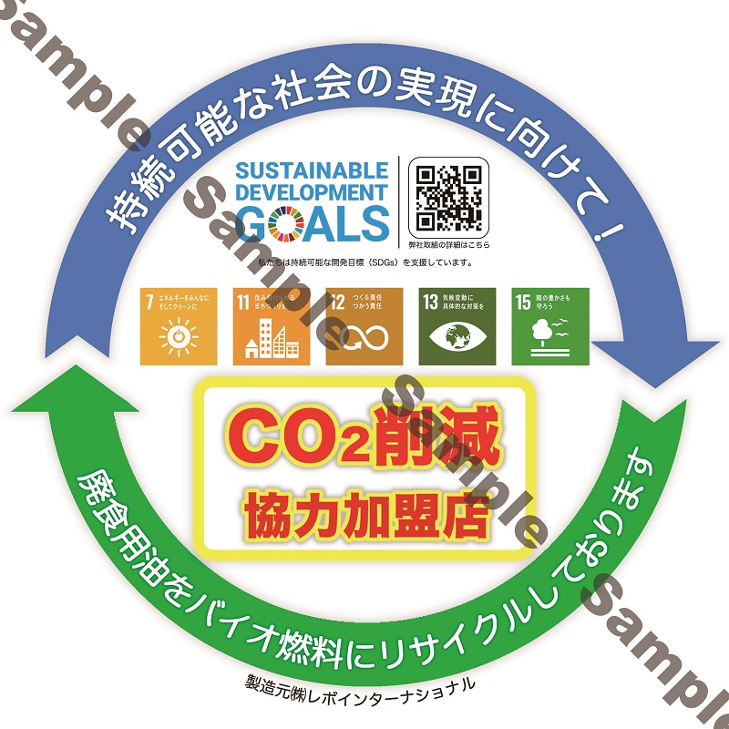 SDGs(Sustainable Development Goals/持続可能な開発目標)の取り組みの一環として、弊社にて廃食用油のお引き取りをさせていただいておりますお客様の店先等で、啓発活動などにご利用いただけますステッカーを配布さていただくことになりました。